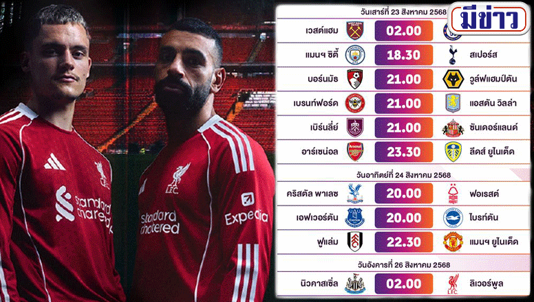 สำหรับแฟนบอลพรีเมียร์ลีก เกมใหญ่ที่ไม่ควรพลาดในสัปดาห์ที่สองคือการที่ ลิเวอร์พูล แชมป์เก่า ต้องออกไปเยือนนิวคาสเซิล ยูไนเต็ด ที่เซนต์เจมส์พาร์ก เกมนี้อาจกลายเป็นศึกที่ชี้ชะตาโมเมนตัมของฤดูกาลตั้งแต่ต้น เพราะทั้งสองทีมต่างมีเป้าหมายใหญ่ในปีนี้ ในวันเสาร์ยังมีอีกหนึ่งบิ๊กแมตช์ แมนเชสเตอร์ ซิตี้ เปิดบ้านเจอกับ ท็อตแนม ฮ็อตสเปอร์ ซึ่งรับประกันความมันส์อย่างแน่นอน ขณะที่อาร์เซนอลเจอลีดส์ ยูไนเต็ด และแมนฯ ยูไนเต็ด