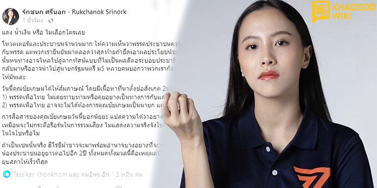 เมื่อวันที่ 2 กันยายน 2568 น.ส.รักชนก ศรีนอก ส.ส.กทม. พรรคประชาชน (ปชน.) โพสต์ข้อความผ่านเฟซบุ๊ก เปิดเผยผลโหวตความคิดเห็นของประชาชนและโหวตเตอร์เกี่ยวกับการตัดสินใจของพรรคว่าจะเลือกฝ่าย “แดง” ฝ่าย “น้ำเงิน” หรือไม่เลือกใครเลย แม้เสียงส่วนมากชี้ว่าการอยู่เฉย ๆ เป็นทางออกที่ดีที่สุด แต่รักชนกกลับแสดงความเห็นต่าง โดยย้ำว่าการไม่กำหนดท่าทีอาจสร้างผลเสียร้ายแรงต่อประเทศ